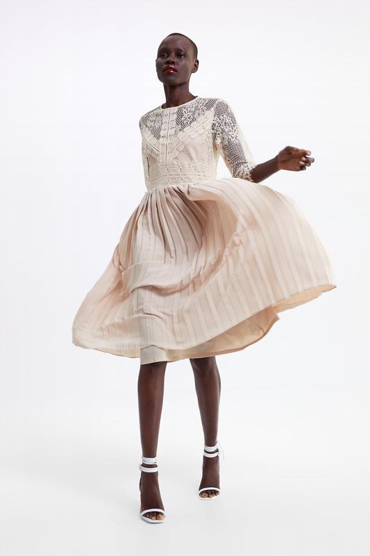 Zara contrast sale pleated dress